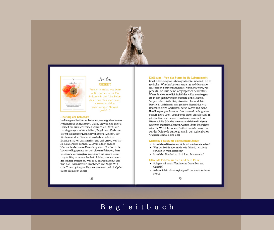 Im Begleitbuch erklären die Autorinnen zu der jeweiligen Botschaft deren Bedeutung und Einlösung. Weiterhin erhältst du Fragen, die dich inspirieren sollen tiefer in die Botschaften einzusteigen und Antworten auf deine Lebensfragen zu erhalten.